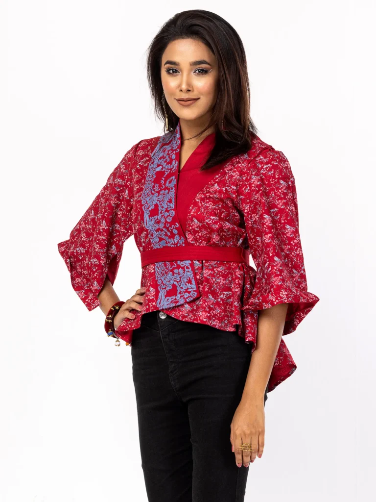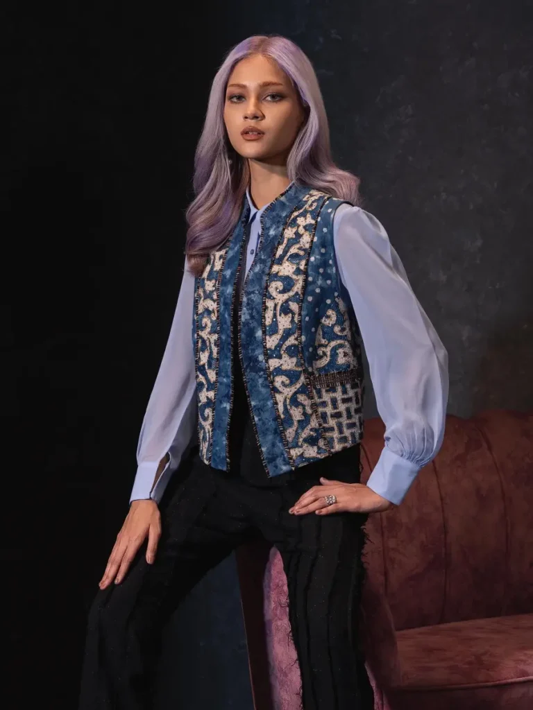 ৳ 1,201.00Blue Embroidered Tencel Taaga Casual Top