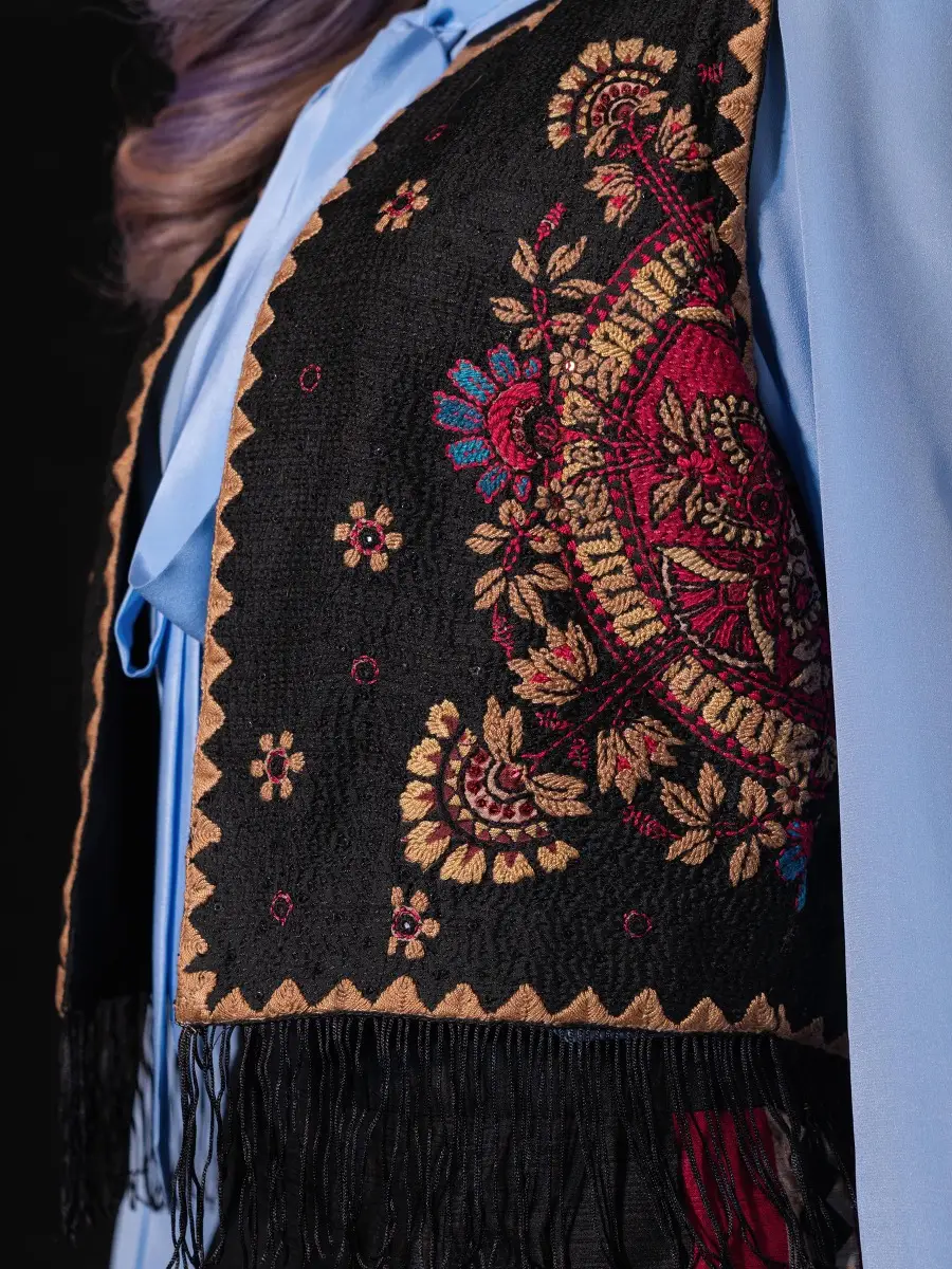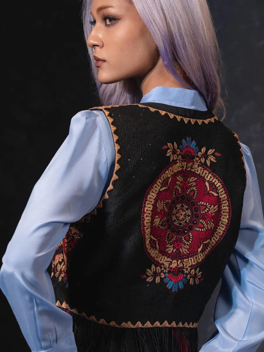 Black Embroidered Endi Silk HERSTORY Jacket