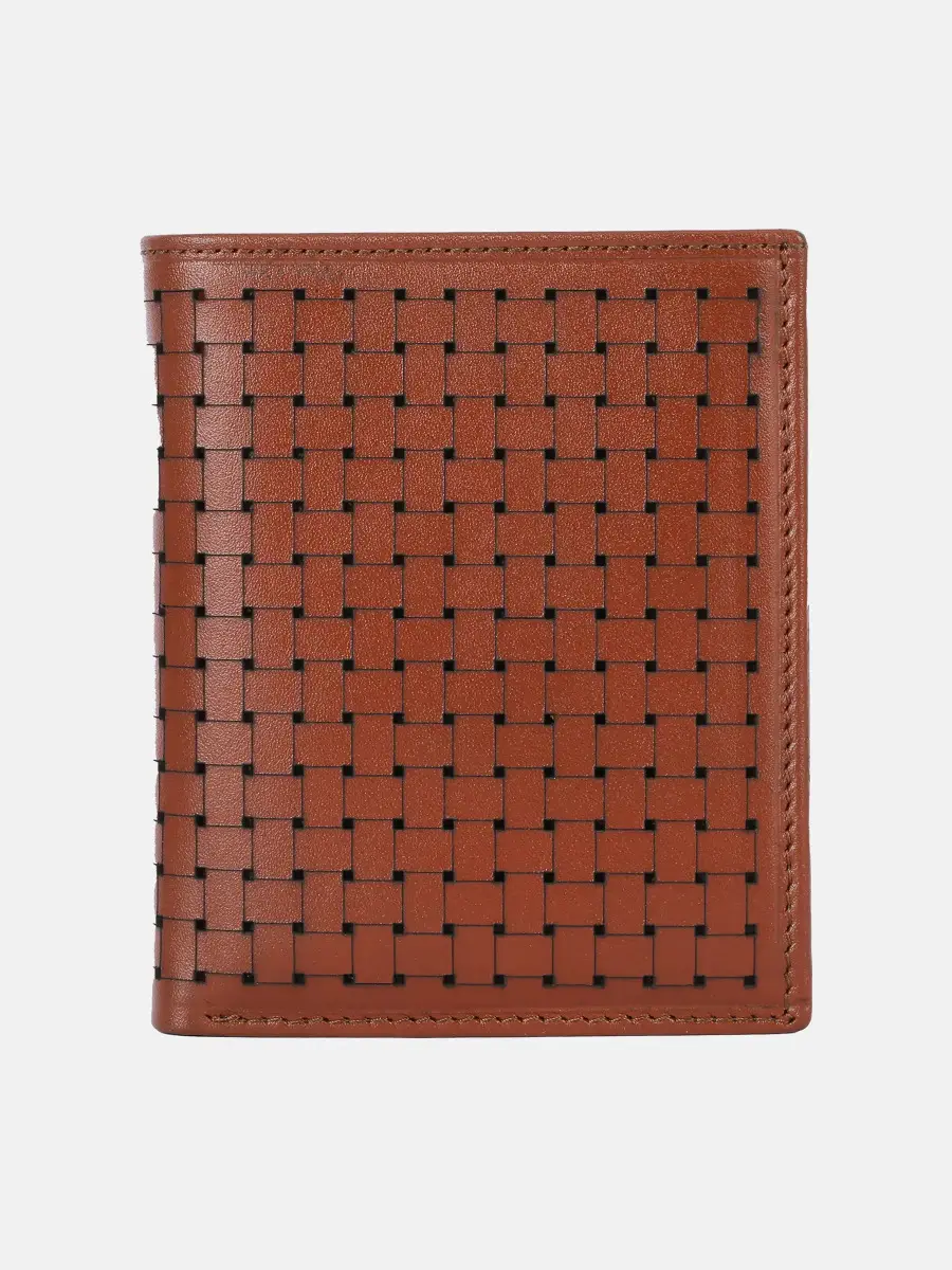 Copper brown laser cut genuine leather wallet with multiple chambers and card slots. Comes with separate card.